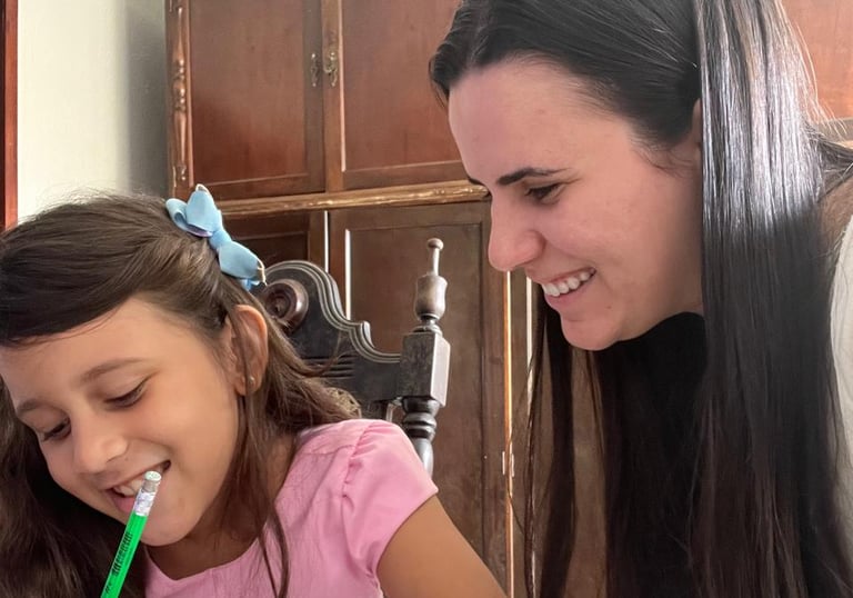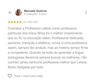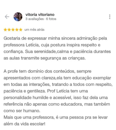 A Professora Letícia oferece aulas online personalizadas para adultos e crianças, com foco em aprendizado e desenvolvimento da inteligência.